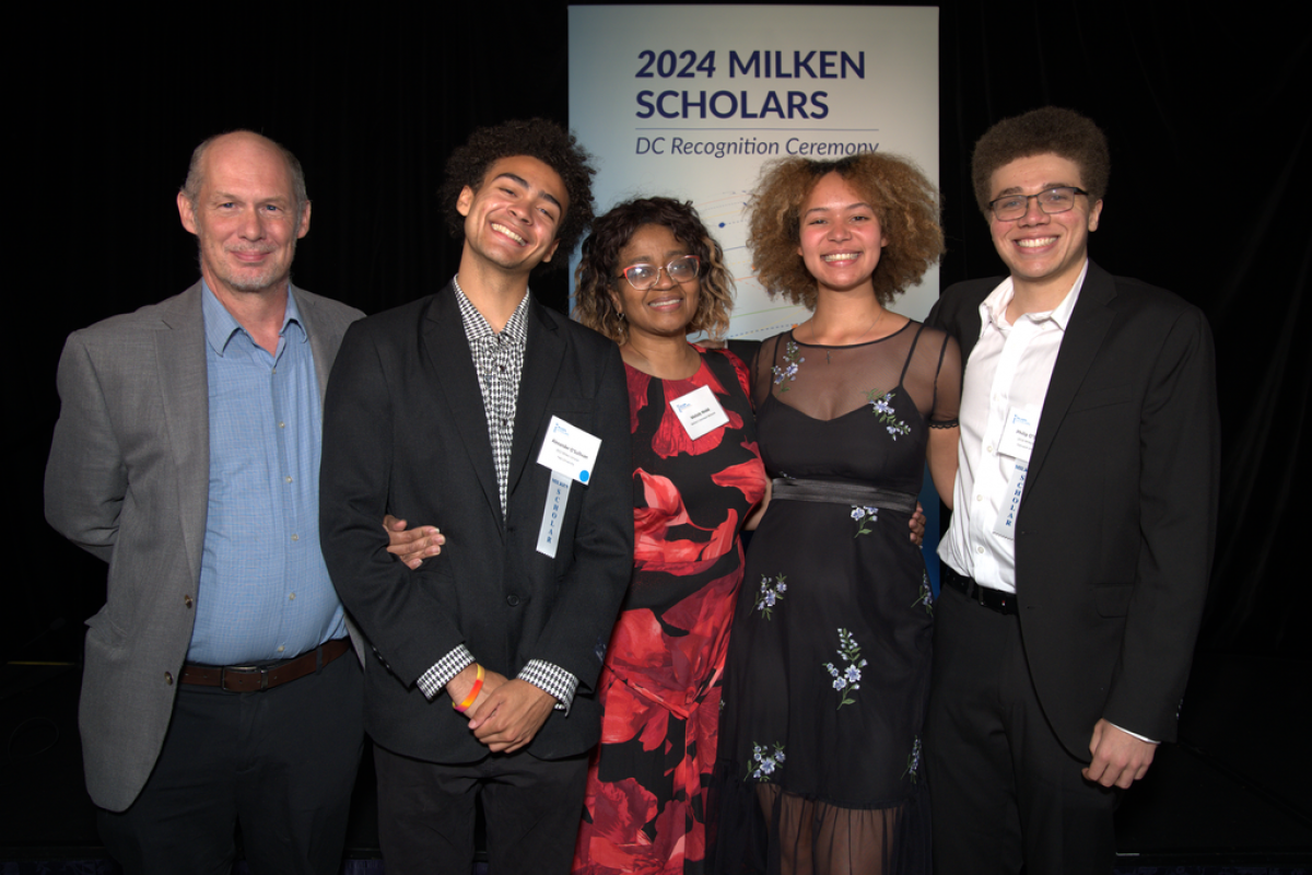 2024 DC Recognition Ceremony Previous Photo Next Photo A Tradition of Milken Scholars The O'Sullivan family joined the festivities. Philip O'Sullivan, MS '16, was the first of his siblings to become a Milken Scholar, and was shortly followed by Sam O'Sullivan, MS '18, and Alex O'Sullivan, MS '22. In this photo: Alex O'Sullivan MS '22 Philip O'Sullivan MS '16 Samantha O'Sullivan MS '18 Other Photos in this album